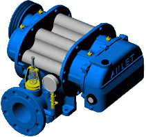 羅茨風機是一種容積型回轉式氣體動力機械,有2個腰形漸開線轉子,通過主、從動軸齒輪使兩轉子作等速反向旋轉,完成吸氣排氣過程。如圖所示,當左側轉子順時轉動時,右側轉子作逆時針轉動,氣體從進口吸入,隨著旋轉時所形成的工作室移動,最后從上面的出口排出。兩轉子相互之間、兩轉子與機殼及側蓋板之間,既要保證相互不發生碰撞,又要保證不因間隙過大影響效率。兩轉子運轉中始終保持微小間隙,使排出的氣體盡量不返回進氣室。其特點為輸出的風量與回轉數成正比,當風機出口壓力變化時,輸送的風量并沒有顯著變化。羅茨風機本身不能壓縮氣體,壓力的升高依賴排氣口工作系統的背壓。