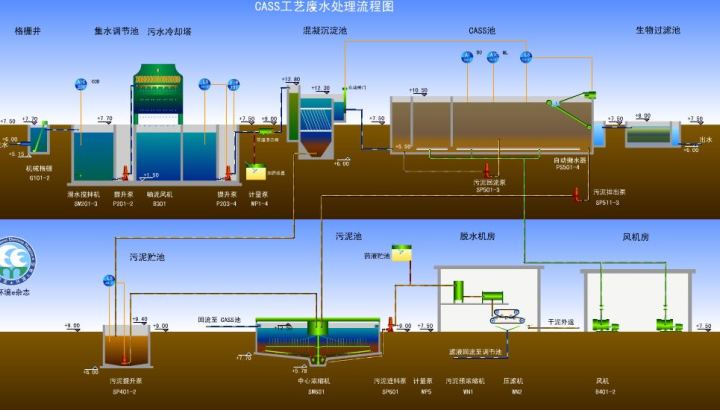 生活污水廠的流程通常是1格柵 2初級沉淀 3生化處理 4二級沉淀 5消毒。由上面的分類就知道,124是分離,35是轉(zhuǎn)化。這種分置式的工藝,雖然穩(wěn)定易行,但是占地面積大,建設(shè)成本高,停留時間長(可以理解為構(gòu)筑物容積大占地大)。