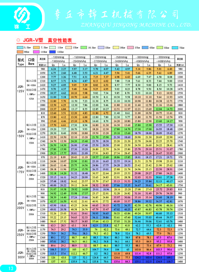注:1、抽氣速率系指在配用推薦前級(jí)泵的條件下,羅茨真空泵的入口壓強(qiáng)在6650pa—2.66pa范圍內(nèi)所測(cè)得的最大抽氣速率。