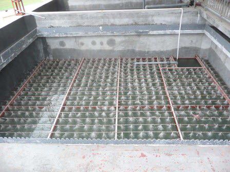 2、按去除1公斤BOD需1.5公斤O2計算 每小時BOD去除量為0.6kg/m3×1100m3/d÷24=27.5kgBOD/h 需氧氣:27.5×1.5=41.25kgO2 空氣中氧的重量為:0.233kgO2/kg空氣 則需空氣量為:41.25kgO2÷0.233O2/kg空氣=177.04kg空氣 空氣的密度為1.293kg/m3 則空氣體積為:177.04kg÷1.293kg/m3=136.92m3 微孔曝氣頭的氧利用率為20%, 則實際需空氣量為:136.92m3÷0.2=684.6m3=11.41m3/min