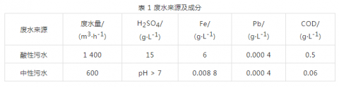 鈦白粉生產過程中排出的工業廢水主要分酸性廢水及中性廢水,其成分及水量詳見表 1.